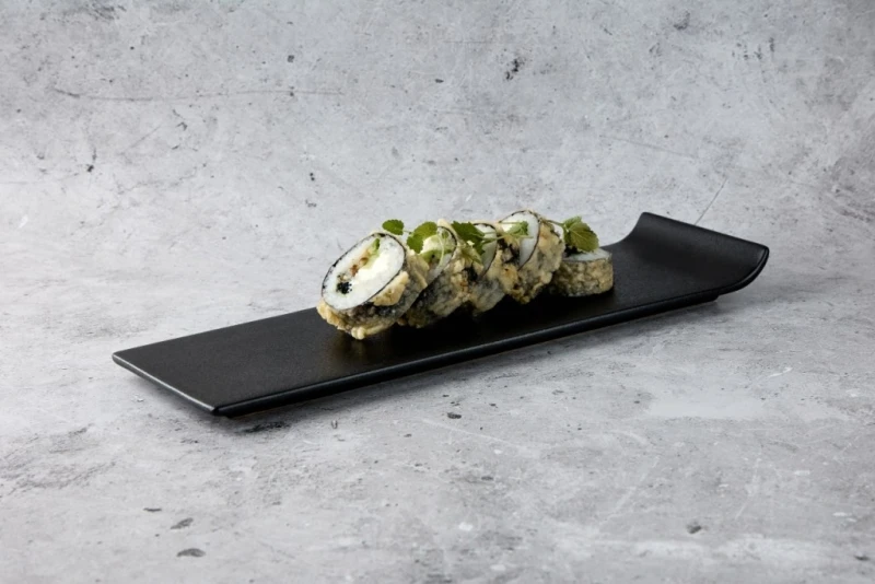 Сливочный сыр, авокадо, икра тобико черная, угорь, рис, нори.