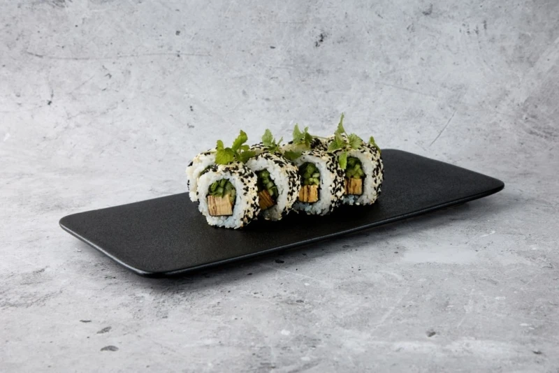Японский омлет, свежий огурец, зеленый лук, кунжут, рис, нори. Соевый соус/имбирь/васаби/палочки не входят в стоимость.